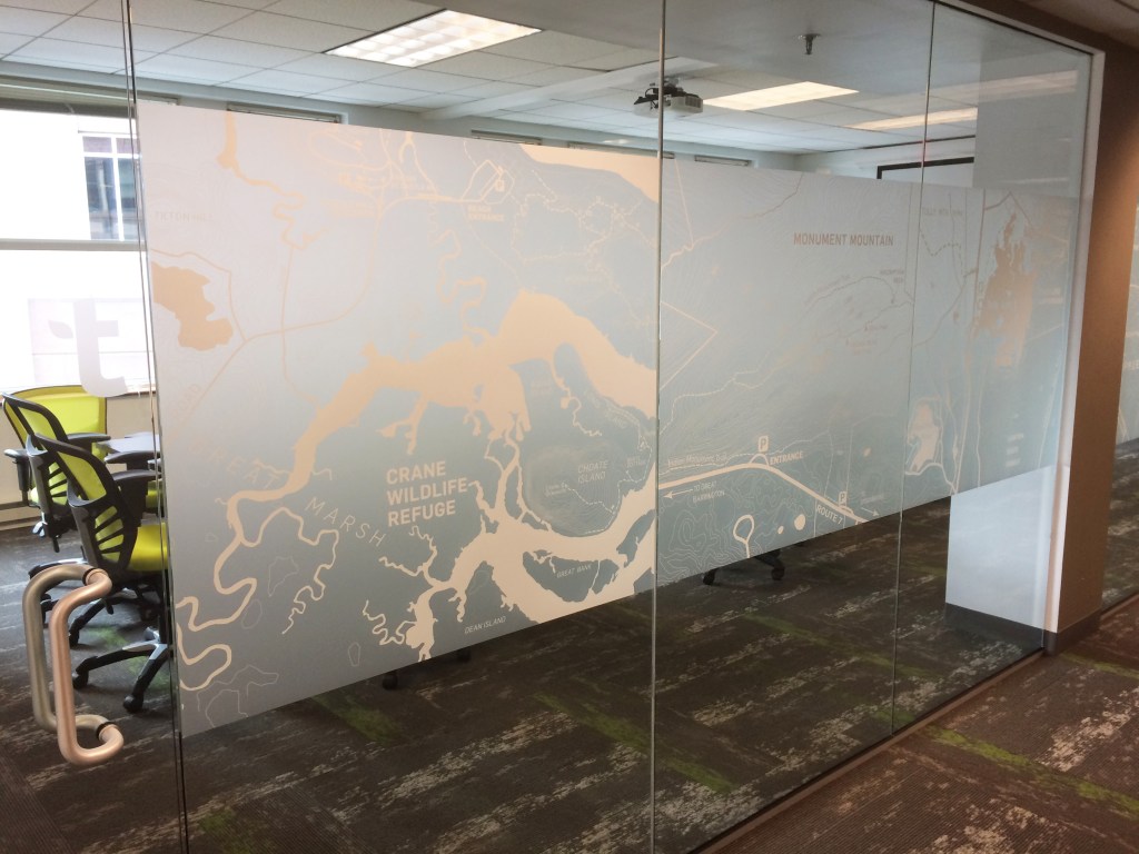 - Using modified property maps, I designed privacy film for the conference room.