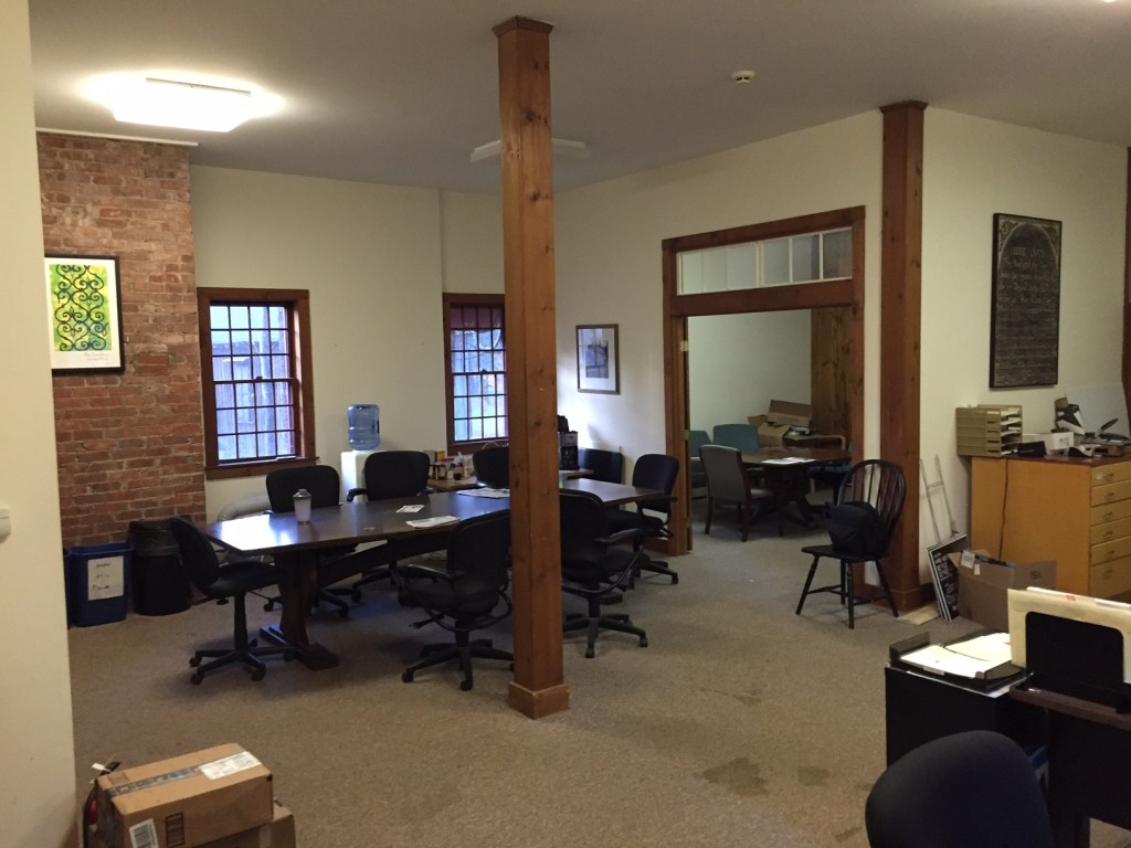 Working with a very limited budget, I designed a solution for The Trustees’ office in Stockbridge, MA, to bring it in line with the organization’s brand. The previously uninspiring space took on an up-to-date feel, echoing the offices in Boston and Florence. I designed wall graphics, specified materials, sourced furniture and fixtures, and assisted with the installation. I also created at SketchUp drawing for pitching the concept to internal stakeholders.
